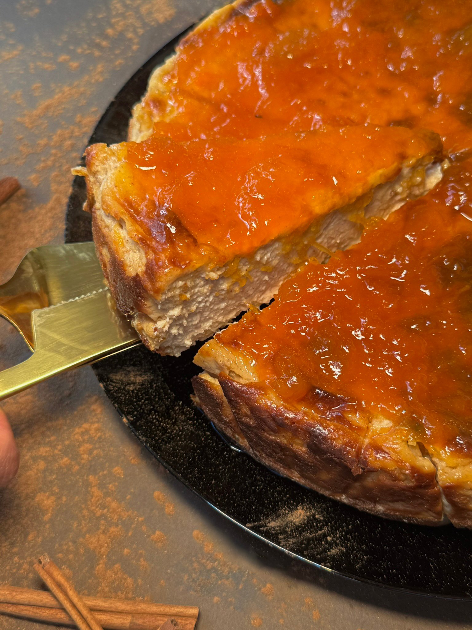 O clássico Cheesecake Basco de San Sebastián, mas nesta versão com especiarias quentes como canela, noz-moscada, cravinho, gengibre e pimenta da Jamaica. No topping temos um leve doce de abóbora e claro o interior cremoso. Feito com ingredientes simples. Uma sobremesa gourmet!