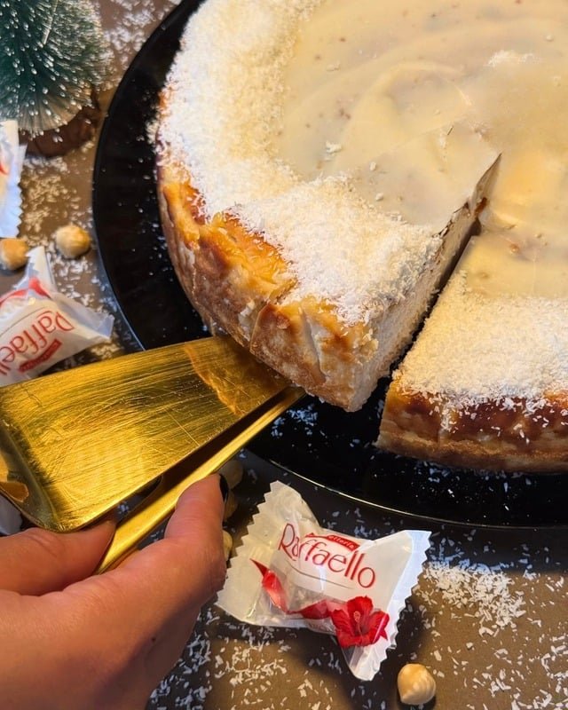 O Cheesecake Basco de Raffaello, nesta versão com recheio na massa e topping do famoso Raffaello e claro o interior cremoso. Feito com ingredientes simples. Uma sobremesa gourmet!